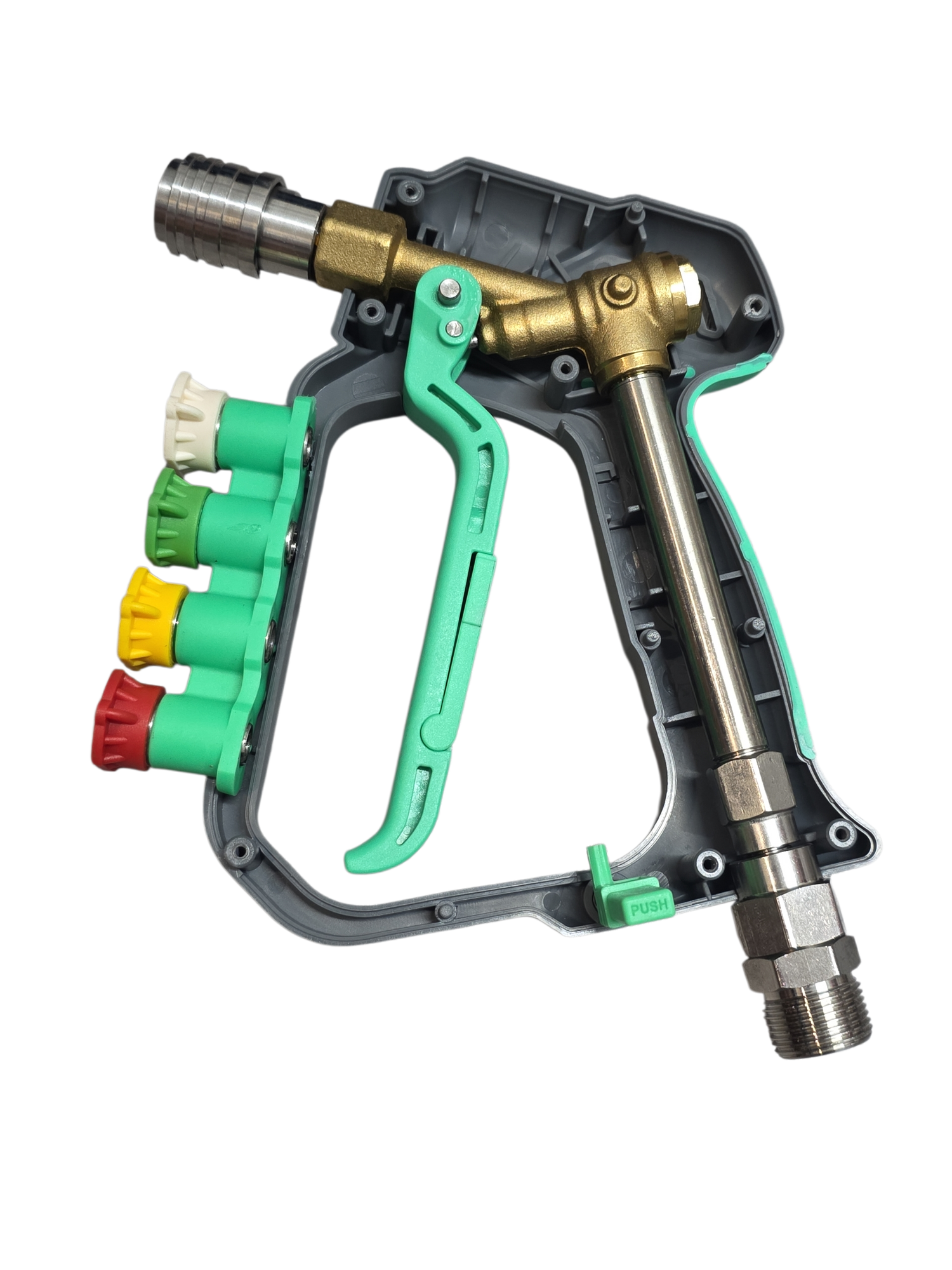 With an integrated swivel, upgraded stainless steel outlet and smooth push-in quick-connect system, this gun is fast, comfortable and easy to use.